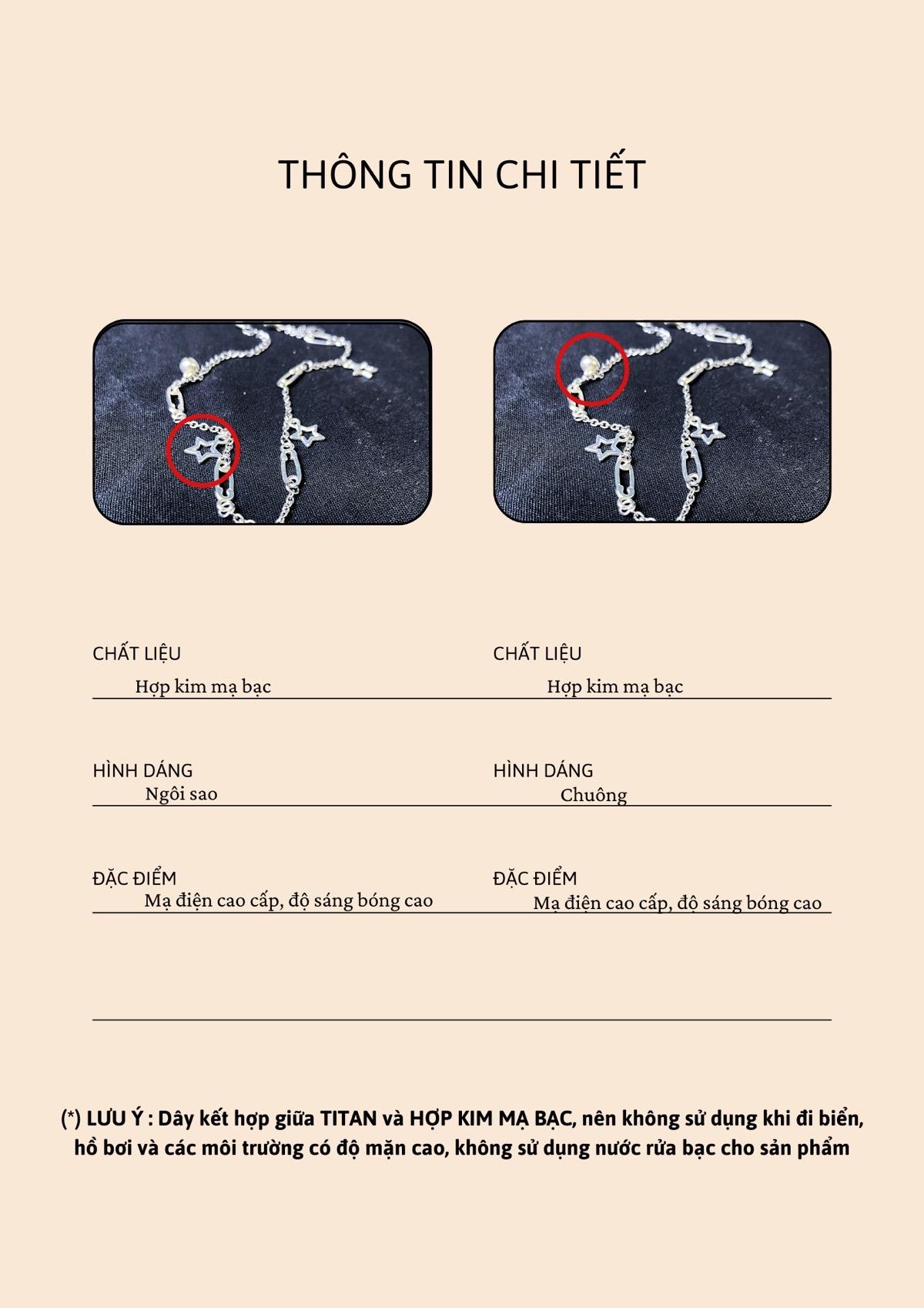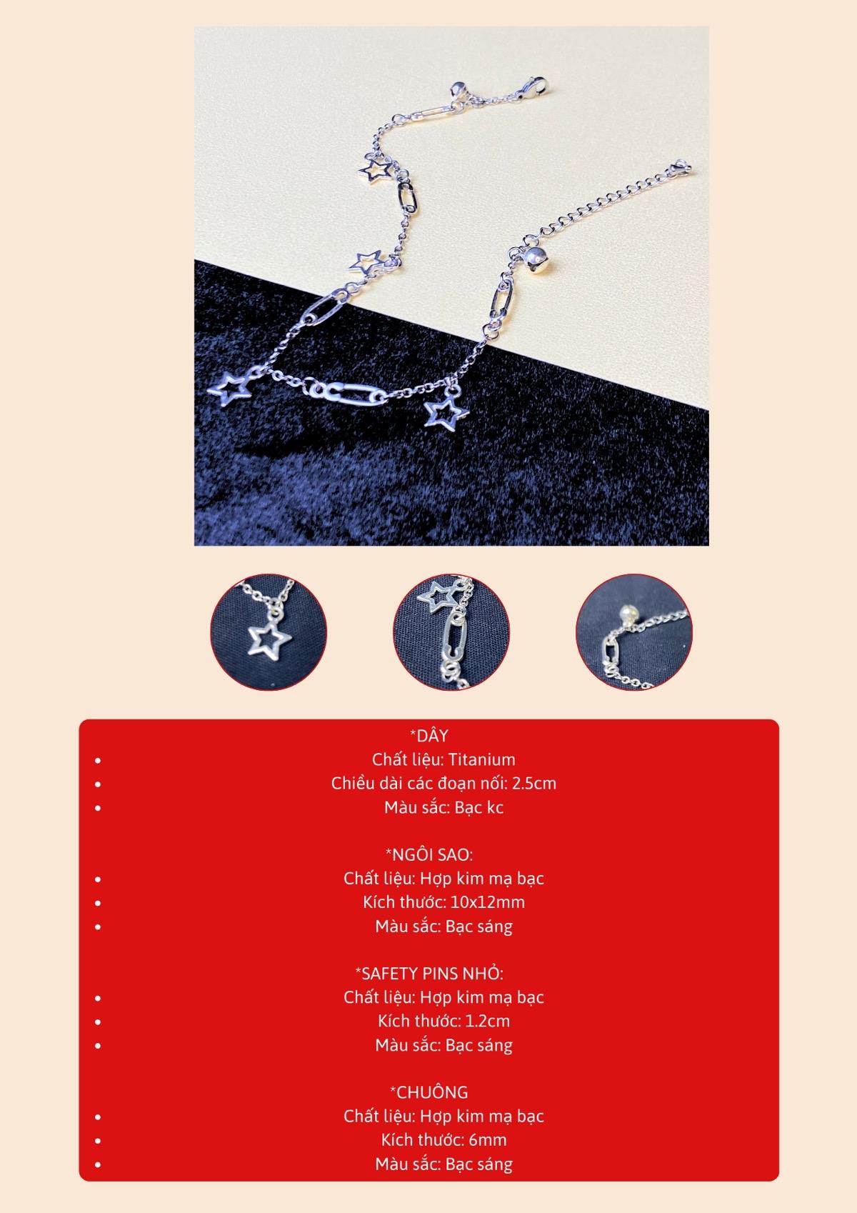 Lắc Chân Mini Safetypins Dây Trơn Bầu Trời Sao - Vòng Chân Chuông Charm Ngôi Sao Women Chain